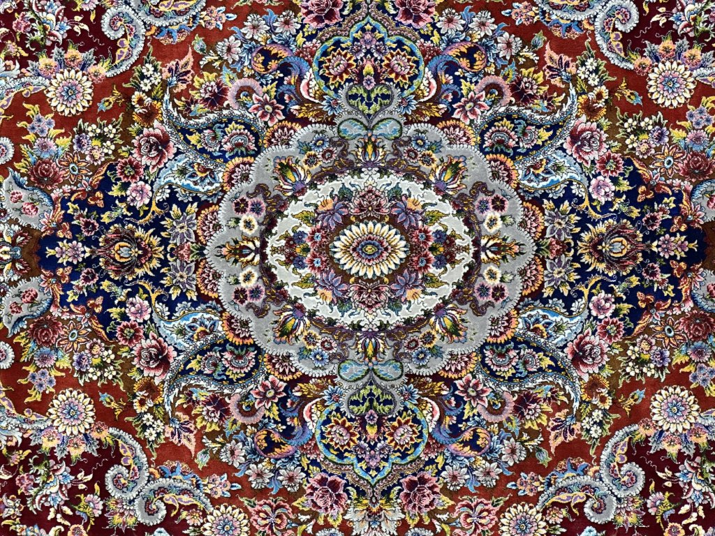 Velmi jemně tkaný hedvábný koberec z Persie, z města Tabríz.