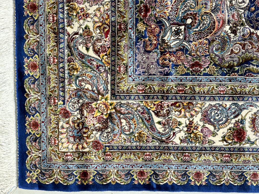 hedvábný perský koberec TABRIZ, 2m×3m modrý/různobarevný výška 6mm